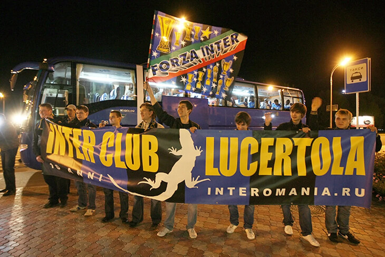 Команда Моуринью прилетела в Татарстан за два дня до матча. Перед вторым терминалом аэропорта ее встречали восемь российских болельщиков «Интера» – из Казани, Екатеринбурга, Ижевска и Санкт-Петербурга. Когда в зале прилета появились первые игроки (Самуэль и Мотта), ребята растянули баннер с названием фан-клуба Interclub lucertola.