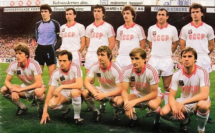 1985г, лето. Сборная СССР перед гостевым матчем в Дании. Эта команда Э.Малофеева, не хватающая звёзд с небес, но и отнюдь не слабая и тем более не проходная (как её потом пытались выдать киевские журналисты). Слева-напр, сидя: С.Балтача - И.Беланов - Б.Поздняков - С.Гоцманов - А.Демьяненко. Стоя: Р.Дасаев - Ю.ГАВРИЛОВ - О.Протасов - С.Алейников - Т.Сулаквелидзе - Г.ЛИТОВЧЕНКО.