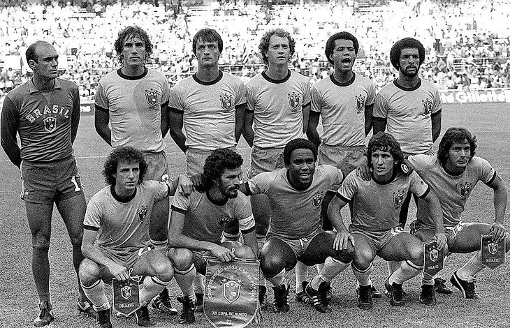 ЧМ-1982.Бразилия, перед своим стартовым матчем, против команды СССР. Сидя: Дирсеу- СОКРАТЕС- Сержиньо- ЗИКО- ЭДЕР. Стоя: В.Перес- Оскар- Леандро- ФАЛЬКАО- Луизиньо- ЖУНИОР.