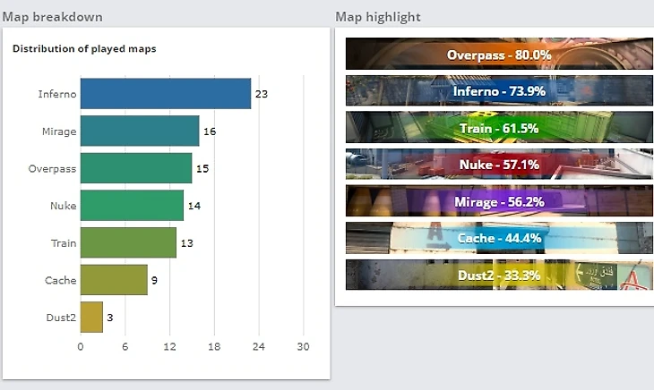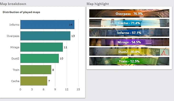 Сразу есть 2 хорошие карты: overpass/infenro, а вот на других жду проблем. Есть нестабильный cahce/mirage, присутствует игра на карте train, но там не всё в порядке.