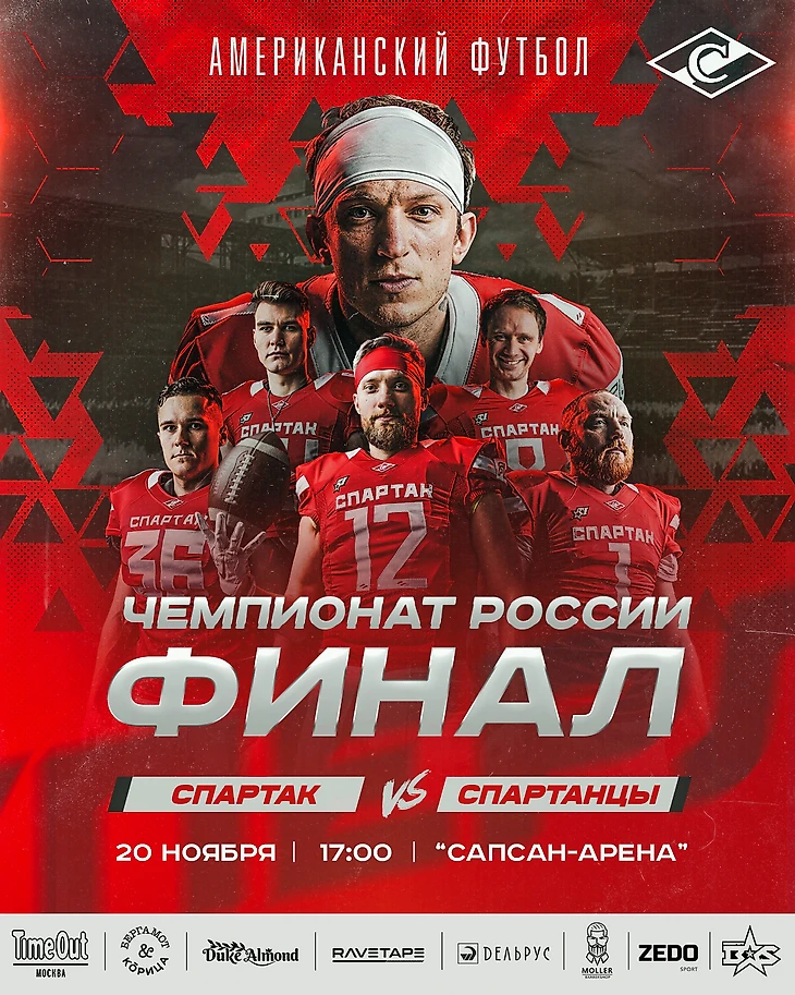 Дорогие болельщики! Наши матчи всегда были бесплатными и свободными для посещения. Финал, который пройдёт 20 ноября, не станет исключением. Нами были принято решение выкупить билеты для болельщиков нашей команды, но для того, чтобы вход на игру был свободным, мы просим вас: 1. Написать нам в личные сообщения сообщества (vk.com/afspartak) в ВК «Я болею за СПАРТАК». 2. Взять с собой на матч любую атрибутику Спартака. Показав на входе на стадион написанное сообщение и свою любимую футболку/розу/брелок с ромбиком, вы получите билет! Не пропустите решающий матч сезона, финал Чемпионата России 2022. Нам очень нужна ваша поддержка, ждём на стадионе! До встречи на ФИНАЛЕ! Кто? «Спартак» (Москва) — «Спартанцы» (Москва) Когда? 20 ноября (воскресенье), кикофф в 17:00 МСК Где? г. Москва, стадион «Сапсан-Арена» (ул. Большая Черкизовская, 125) Один за всех и все за одного!