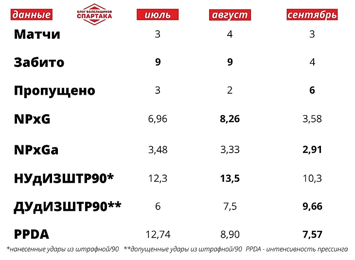 Красноречивее всего об этом свидетельствует показатели интенсивности прессинга (PPDA). Месяц назад «Спартак» был 4-м в РПЛ по этому показателю, сейчас – уже 2-й. Москвичи дают сопернику все меньше возможностей разыгрывать мяч на своей половине. Прессинг – не только инструмент атаки, но и защиты.