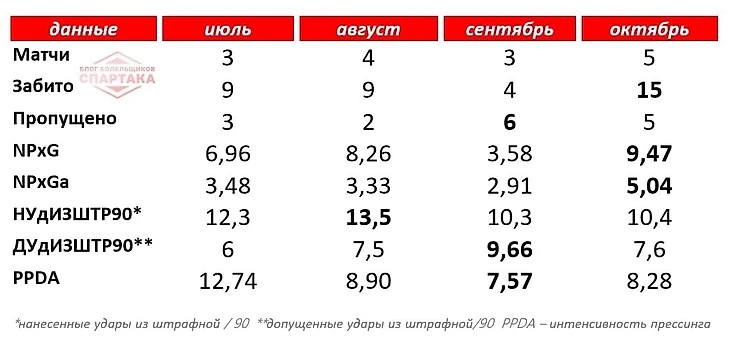 Третий раз подряд «Спартак» забивает 10 и более голов за календарный месяц. Несмотря на стабильно высокую результативность, беспроигрышная серия стоила «Спартаку» серьезных усилий.