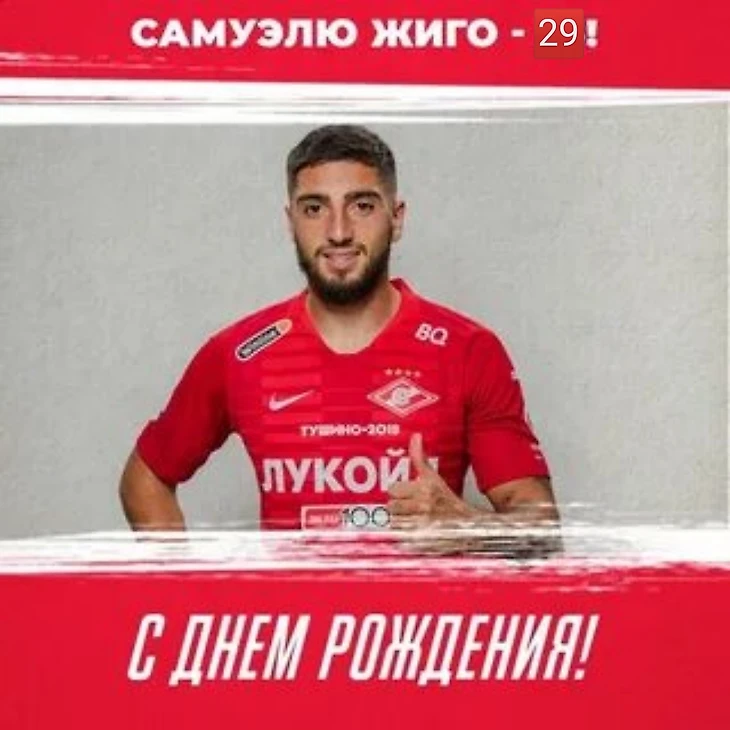 Сегодня 29 лет исполняется бывшему футболисту московского "Спартака" Самуэлю Жиго.