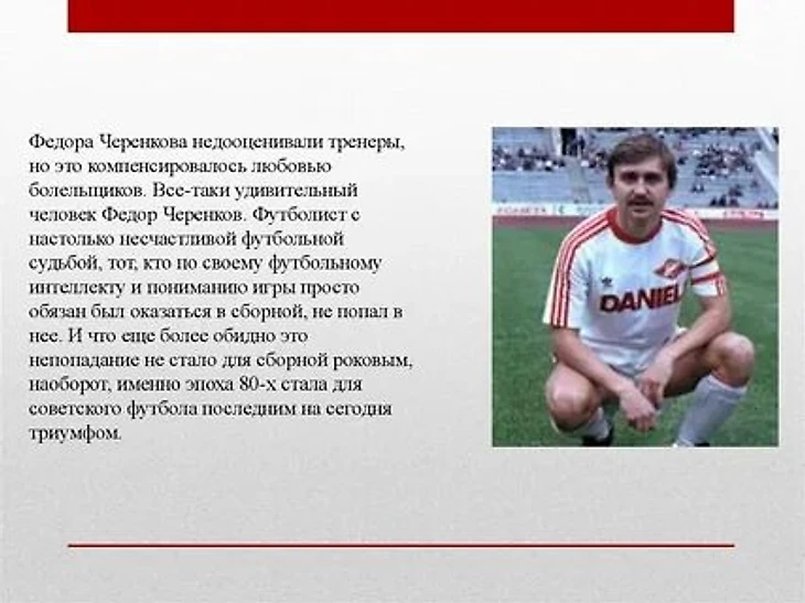 В советском футболе наперечёт были футболисты, к которым одинаково почтительно относились поклонники клубов-антагонистов – таких, как «Спартак» и «Динамо», и киевское, и московское. Пожалуй, Фёдор Черенков в условном рейтинге всеобщих любимцев был вне конкуренции.