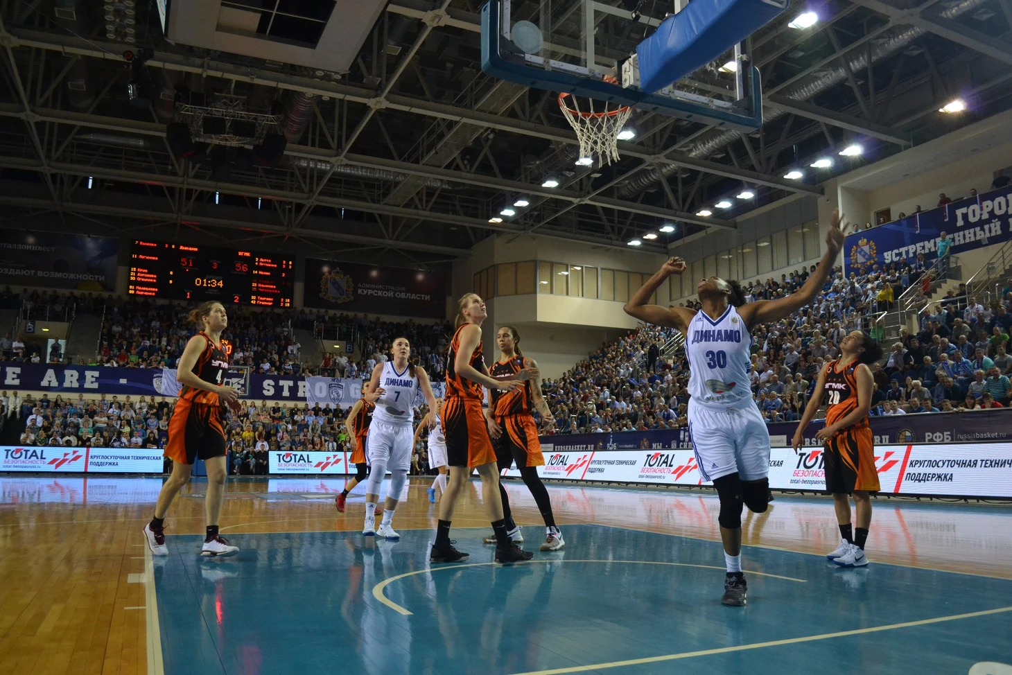После большого перерыва игра этих двух команд не изменилась ровным счетом никак. УГМК снова оторвался, Динамо снова догоняло. На этот раз отставание по итогам третьей четверти составляло уже -4 при счете 57:61 в пользу гостей.