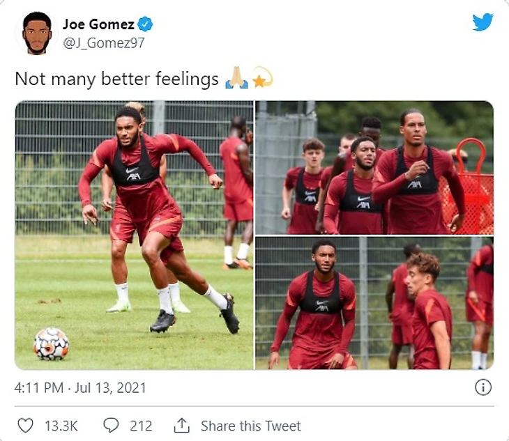 Джо Гомес вернулся к тренировкам с первой командой и не может быть счастливее. Футболист поделился эмоциями в своих социальных сетях.
