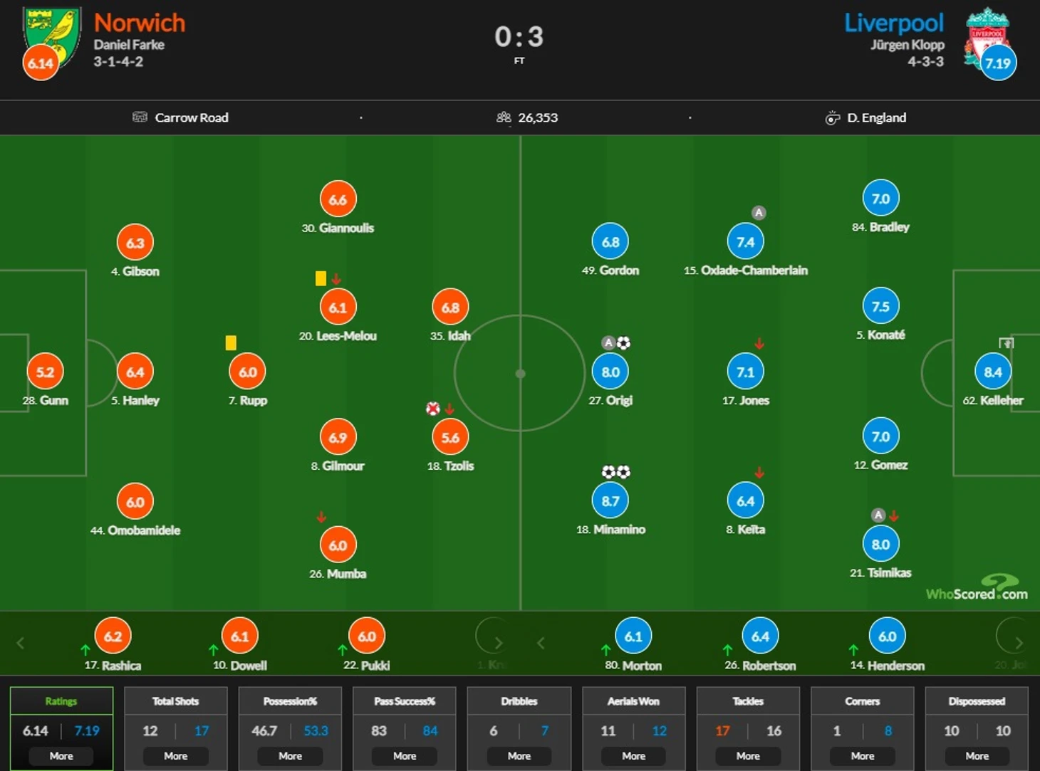 На 80й минуте снова отличился Минамино, не оставив «Норвичу» шансов.