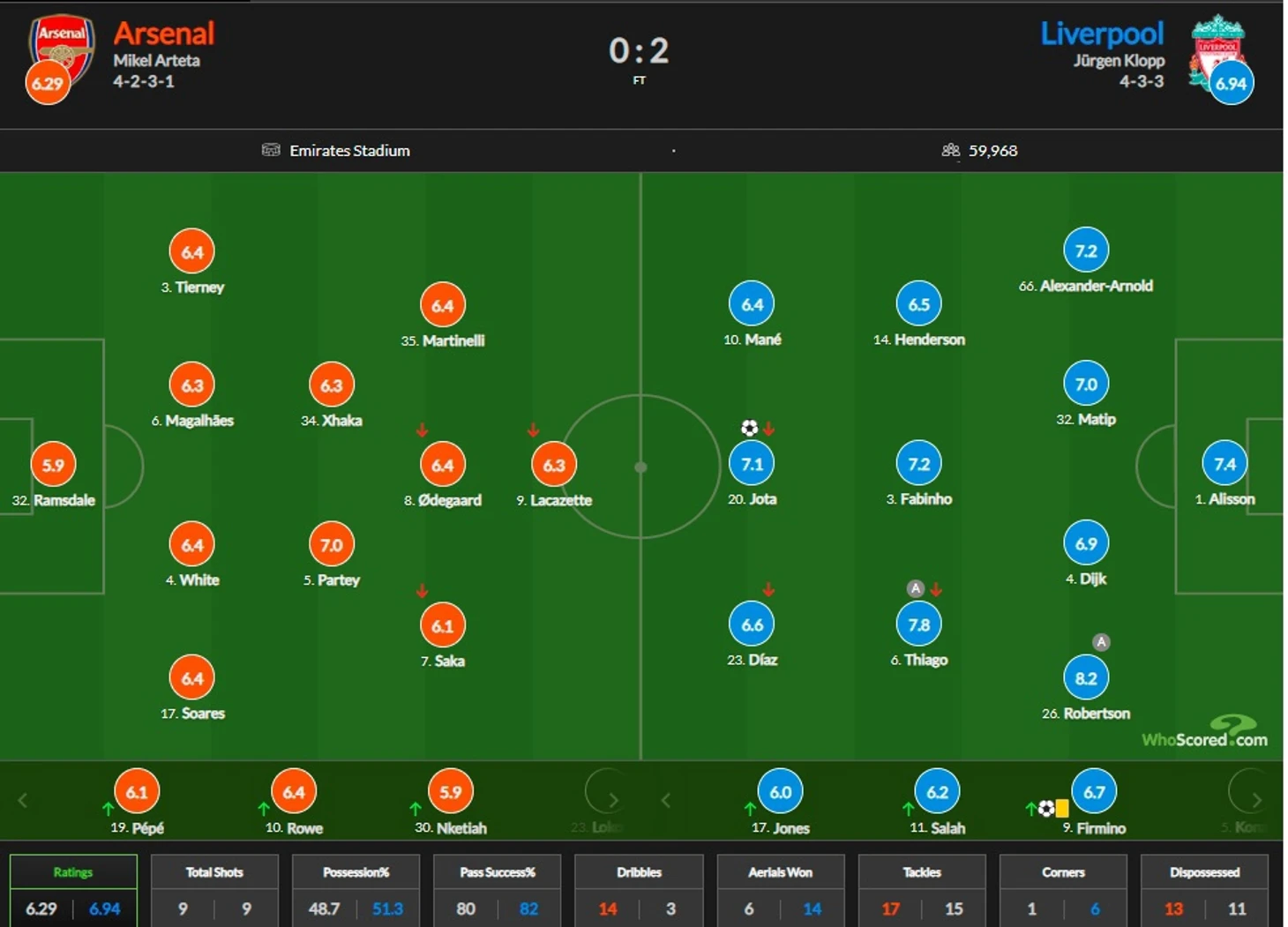 Вот оценки команды Юргена Клоппа за матч с «Арсеналом» от портала: