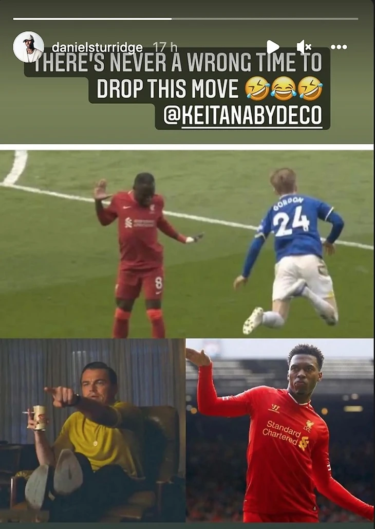 Момент был из победы «Ливерпуля» над «Эвертоном», когда Кейта, казалось, вырвался из захвата Гордона, его забавная поза действительно создает впечатление, будто он пародирует Дэниела Старриджа.