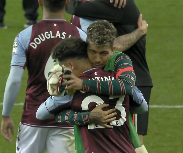 Снято на камеру: Коутиньо и Фирмино обнимаются после победы «Ливерпуля» над «Астон Виллой»