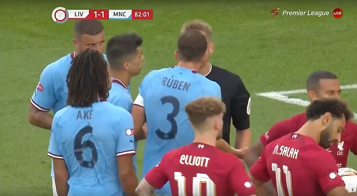Алькантара закрыл Эдеросна и развернулся лицом к Салаху – стоял до конца, пока не судья не попросил выйти из штрафной площади. Эллиотт уже ушел, но Тиаго сопротивлялся до конца и требовал, чтобы сначала вышли игроки «Сити».