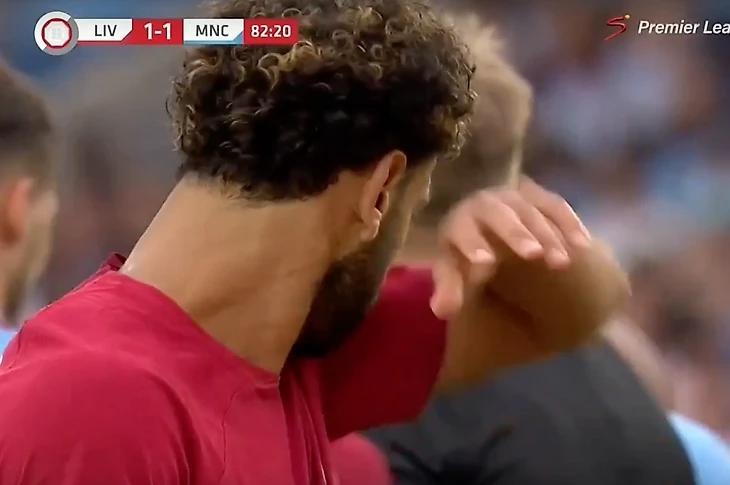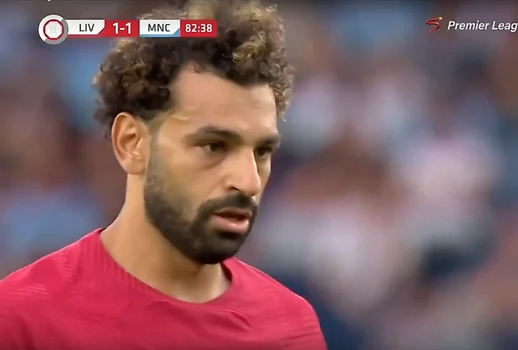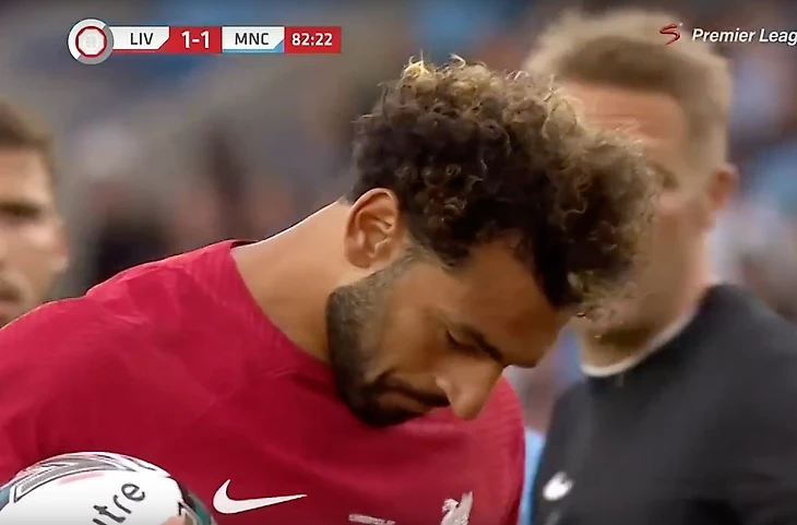 Далее Салаху самому пришлось избегать взгляда: смотрел то вниз, то отворачивался, то делал вид, что смотрит на вратаря, но направлял глаза ниже.