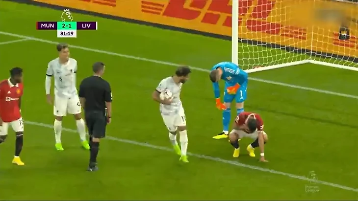 Внимание болельщиков привлек эпизод на 81-й минуте, когда Мо Салах сократил счет. Египтянин забил, а Бруну Фернандеш принялся делать все, чтобы максимально потянуть время. Он держал мяч и никак не хотел отдавать его соперникам.
