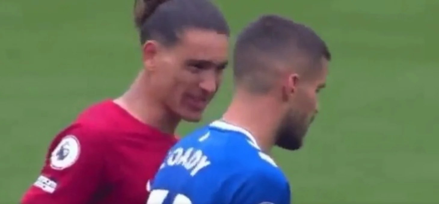 Дарвин Нуньес подшутил над защитником «Эвертона» Конором Коуди после того, как VAR отменил его гол во время мерсисайдского дерби. Нуньес наконец вернулся в стартовый состав после того, как отбыл дисквалификацию на три игры, но он не смог изменить судьбу нулевой ничьей «Ливерпуля» с «Эвертоном» на «Гудисон Парк».