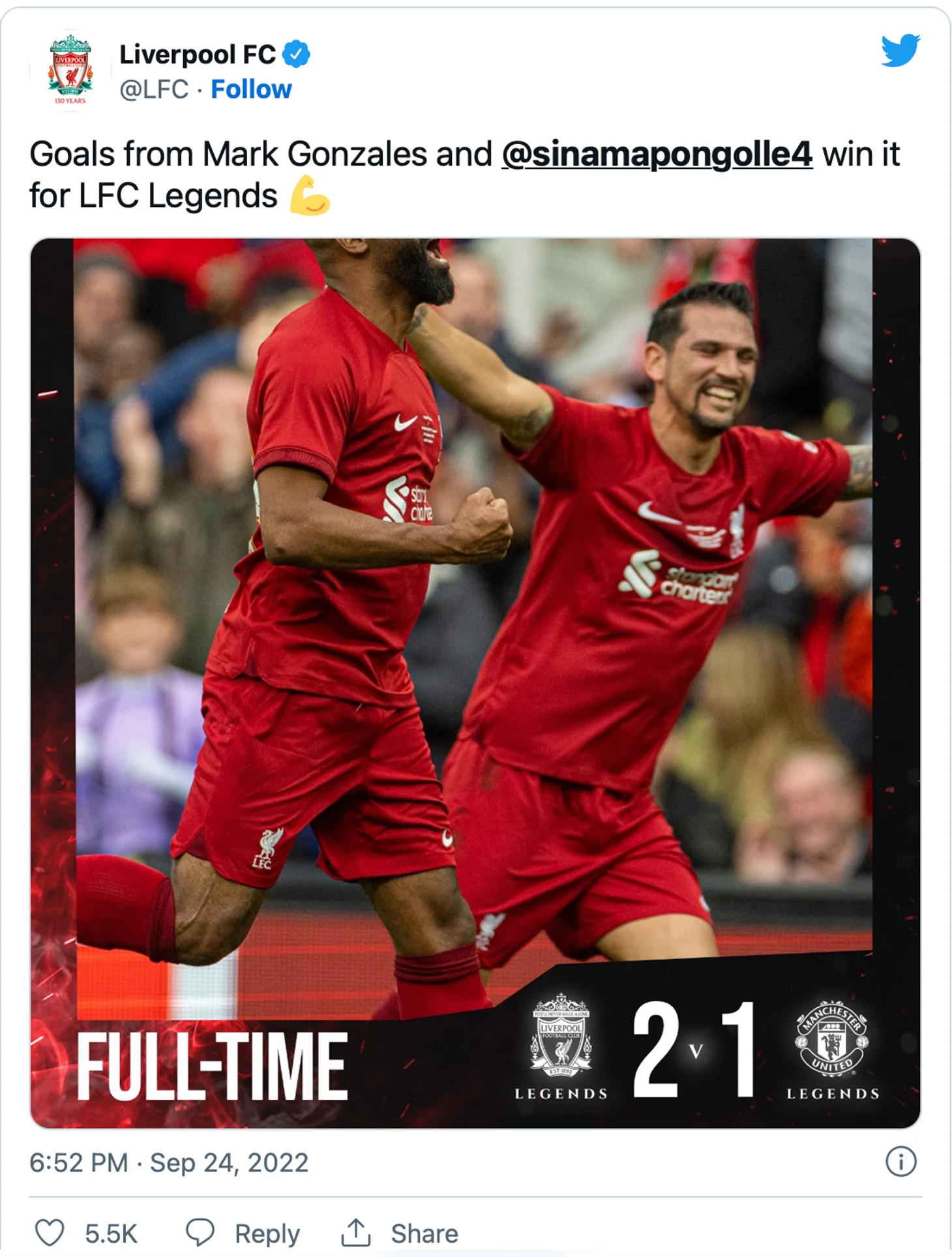 Однако после перерыва сработали замены «Ливерпуля»: Марк Гонсалес и Флоран Синама-Понголь оформили по голу, принеся победу команде хозяев.