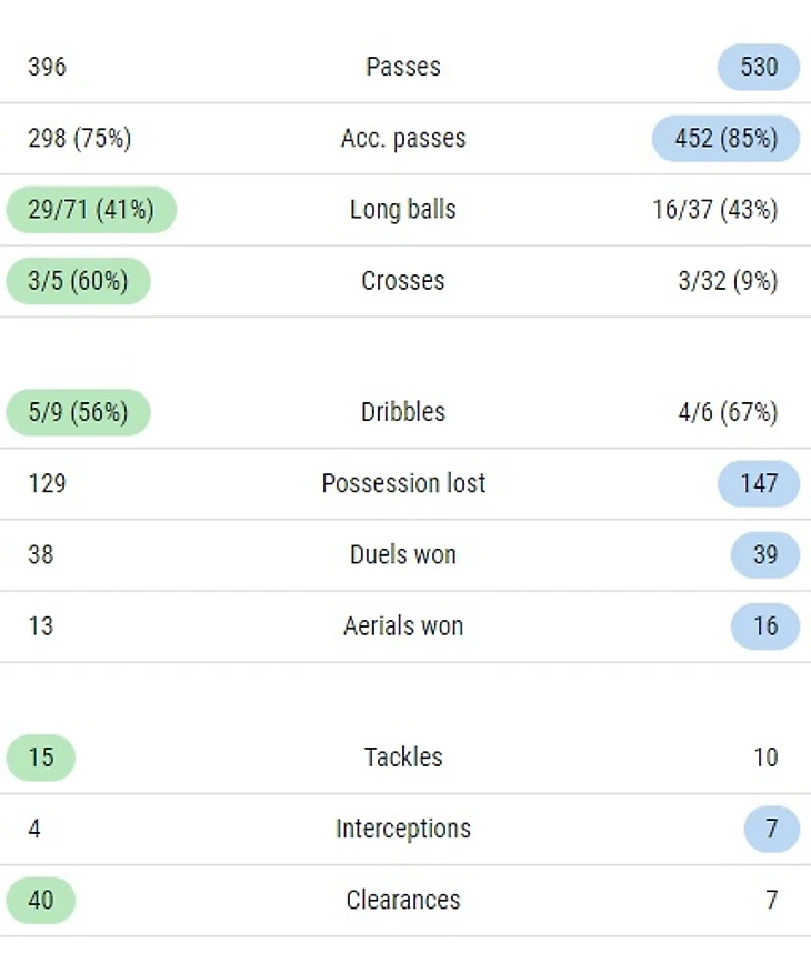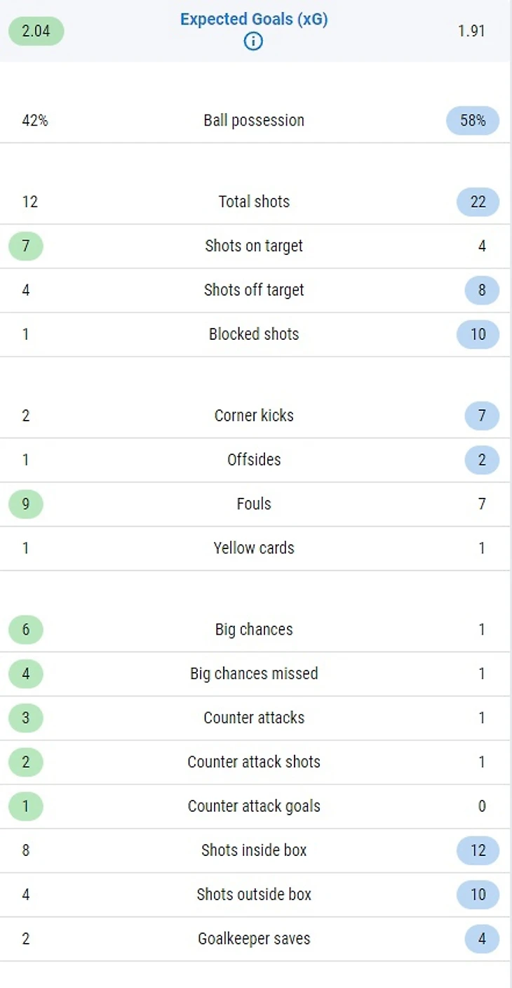 И статистика всей команды («Ливерпуль» в левой колонке):
