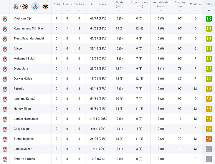 Лучший − Ван Дейк, худший − Байчетич. Оценки игроков «Ливерпуля» за матч против «Вулверхэмптона»