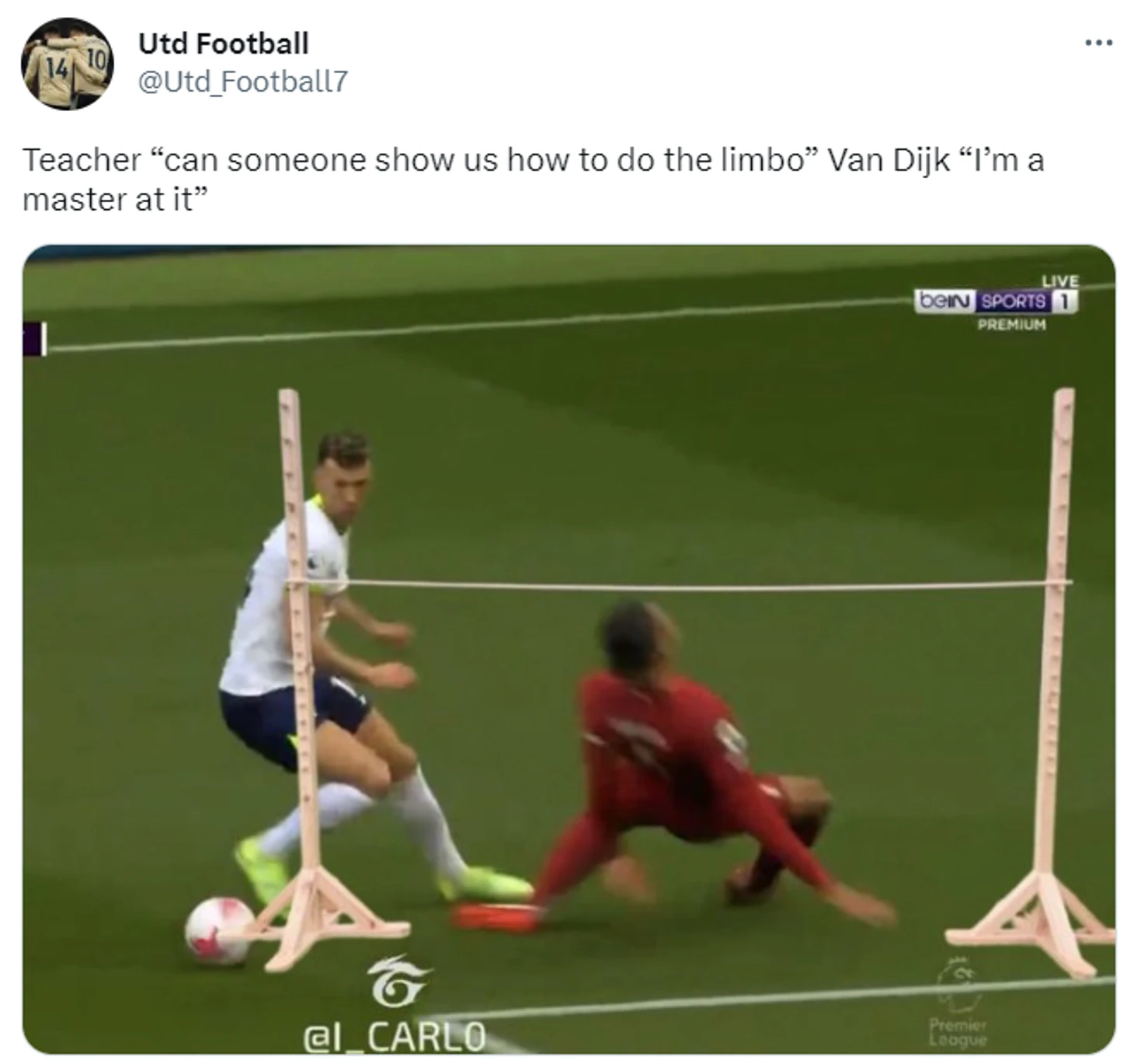 Учитель: «Кто-нибудь может показать нам, как танцевать лимбо?» Ван Дейк: «Я в этом мастер».
