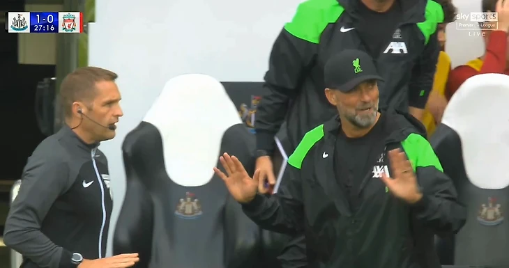 📸 После удаления Ван Дейка тренер «Ньюкасла» жестом призвал Клоппа замолчать. Юрген красиво ответил оппоненту, когда «Ливерпуль» сделал камбэк