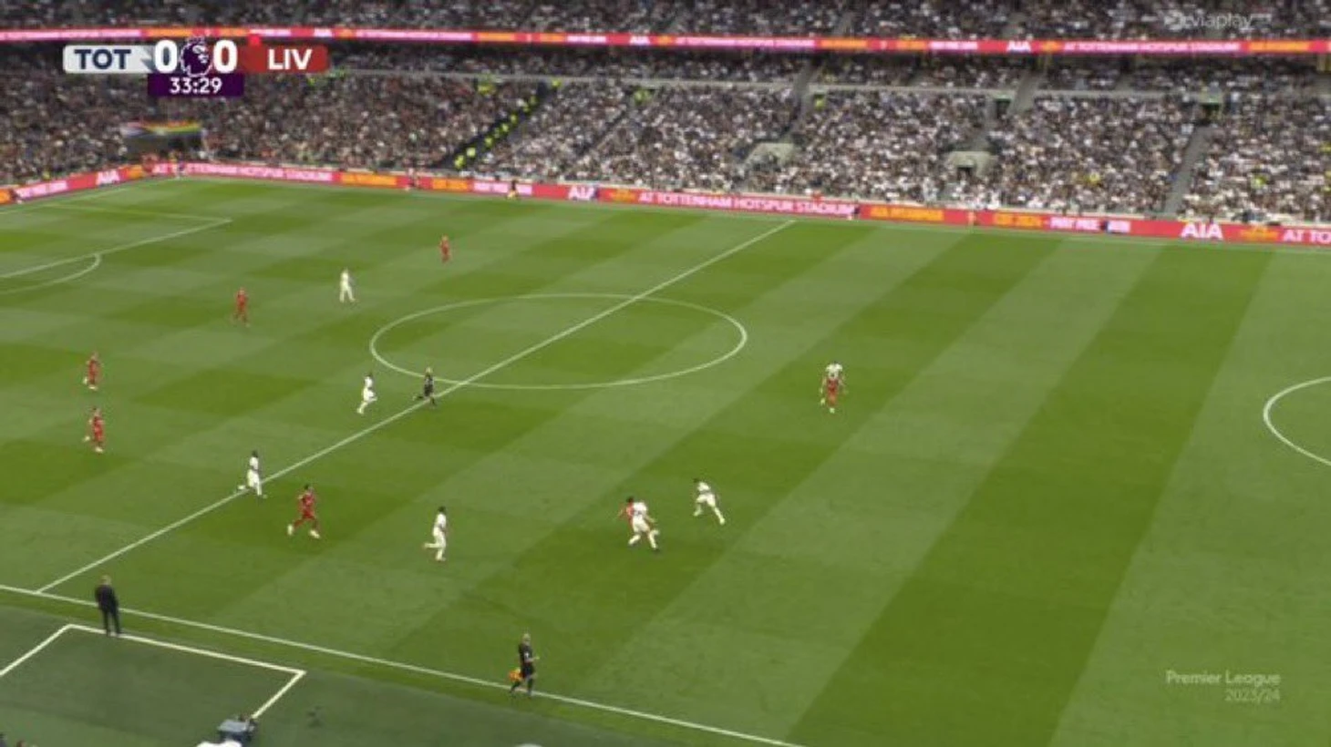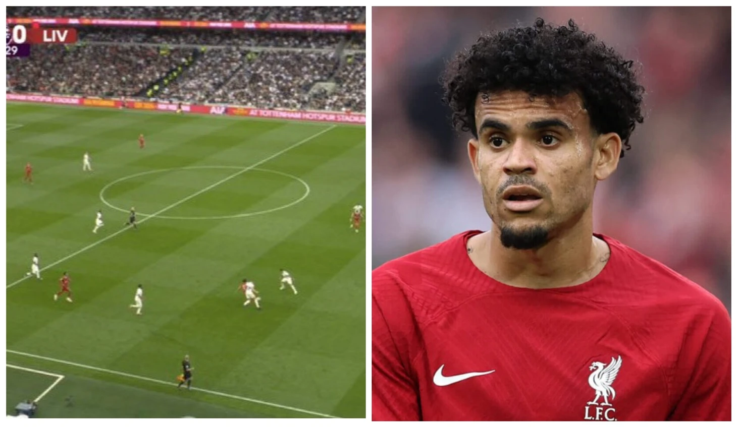 Мерсисайдцы как будто не заметили потерю одного игрока и на 34-й минуте организовали шикарную атаку. Мохамед Салах увидел рывок Луиса Диаса и отдал ему передачу на ход между двумя игроками «Тоттенхэма».