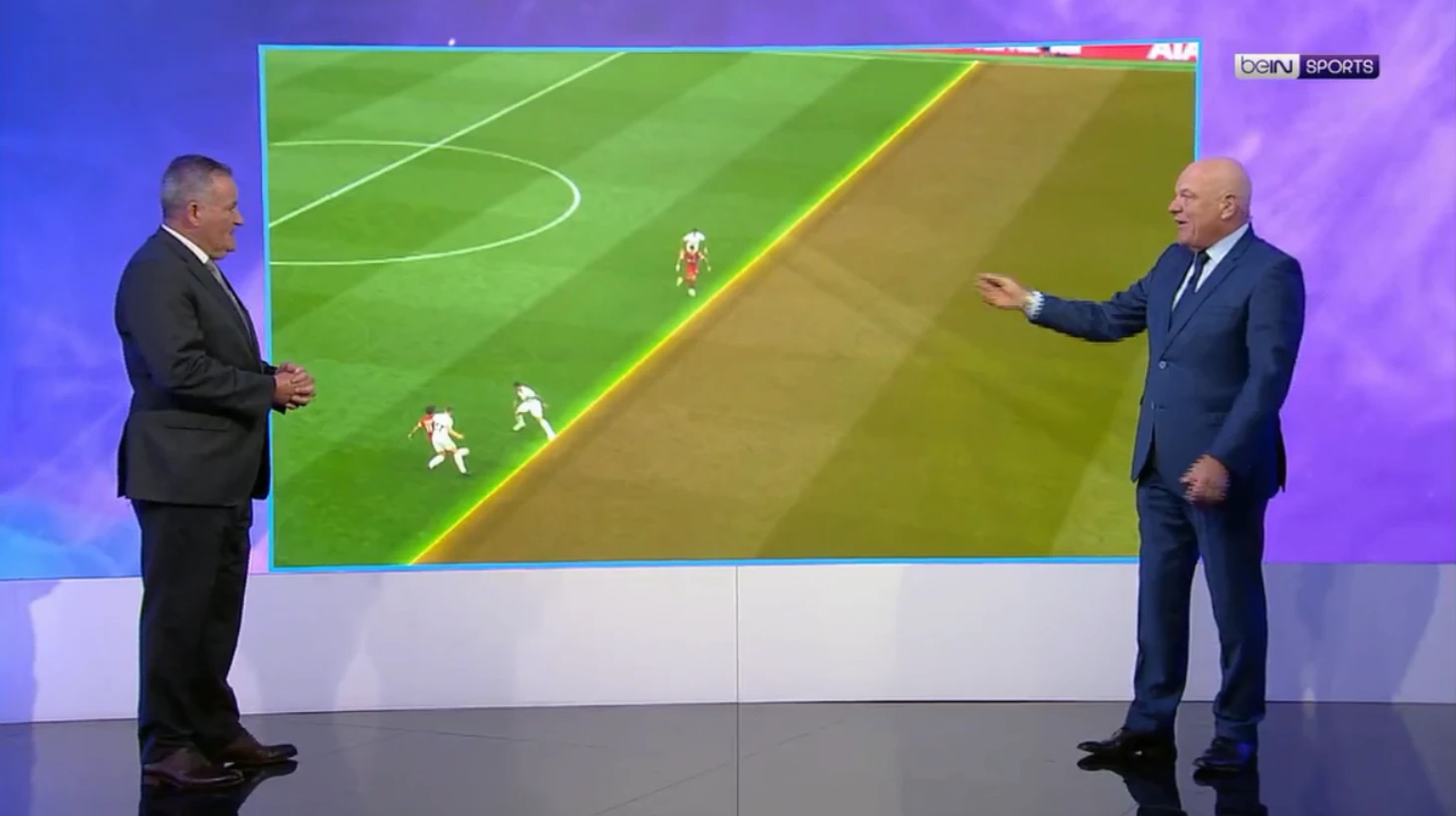 В перерыве матча в студии beIN Sports разобрали этот эпизод и нарисовав собственные линии пришли к выводу, что судьи ошиблись.