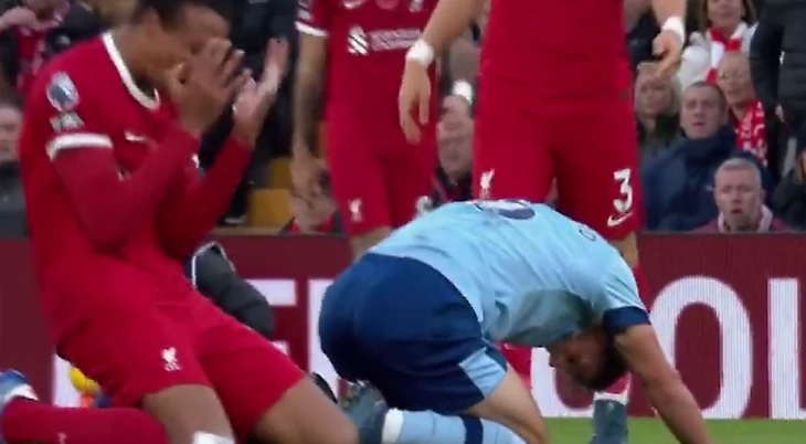 📸Матип пытался отобрать мяч, а судья свистнул фол. Защитник «Ливерпуля» был вне себя от ярости