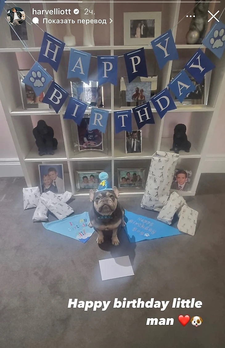 Также свой день рождения отметил пес Харви Эллиотта. Хорошему мальчику исполнилось 4 года, с чем его поздравил хозяин.