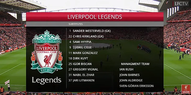 Где можно посмотреть матч легенд «Ливерпуля» и «Аякса»? «Красные» организовали прямое включение с «Энфилда» на официальном Youtube-канале.