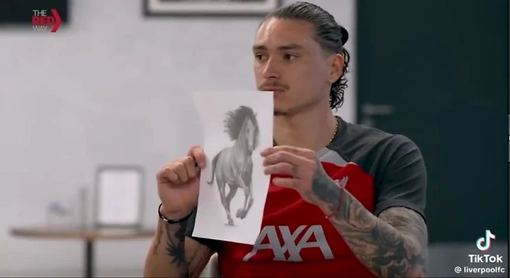 Дарвин Нуньес стал напевать под нос один из треков группы, тогда Эндрю спросил у него, что он может предложить. Ответ на фото. Оказывается, все это время уругваец просто рисовал. Какое отношение лошадь имеет к месяцу Земли? Никакого.