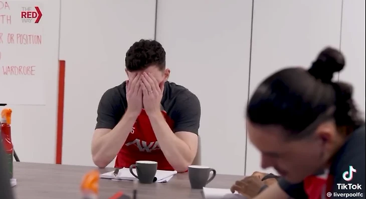 Шотландец начал объяснять для чего он всех собрал в одном зале, когда в комнату вошел опоздавший Нуньес − уругваец проследовал к своему месту, а затем как ни в чем не бывало занялся своими делами. Когда, казалось бы, все было готово, Мо Салах спросил, не дадут ли ему кофе. Оказалось, что каждый делал его себе сам и египтянин ретировался (спойлер: до конца видео).