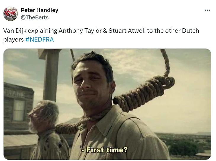 💭 «Ван Дейк рассказывает об Энтони Тэйлоре и Стюарте Этвелле другим голландским игрокам».