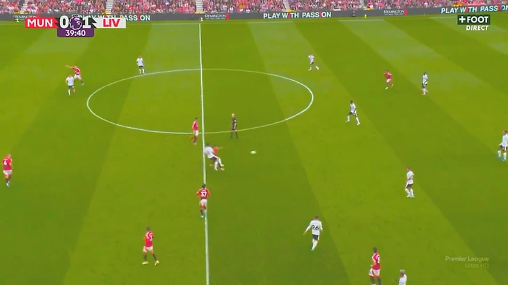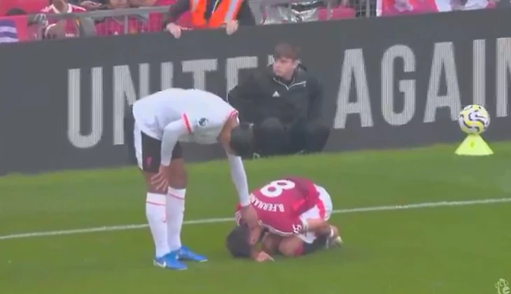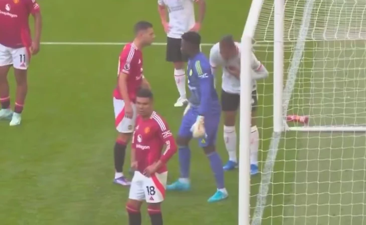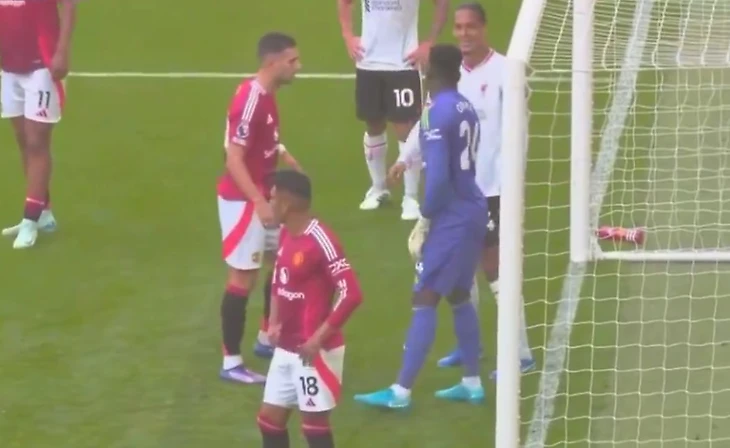 В начале матча «Ливерпуль» подавал угловой, на который пришел Ван Дейк. Он оказывал давление на Андре Онана, который в какой-то момент оттолкнул защитника локтем. Нидерландец на секунду схватился за живот, но потом улыбнулся вратарю.