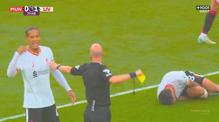 Во втором тайме Вирджил жестко сыграл против Бруну Фернандеша, мог получить желтую карточку, а вместо того, чтобы извиниться перед соперником, почесал ему за ухом. Можно ли это считать за попытку получить прощение?