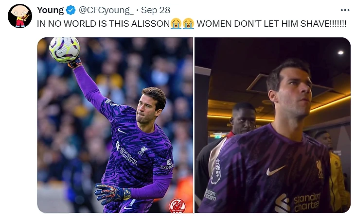 Болельщики уже смогли оценить обновленный имидж Алиссона – в победном матче против «Вулверхэмптона».