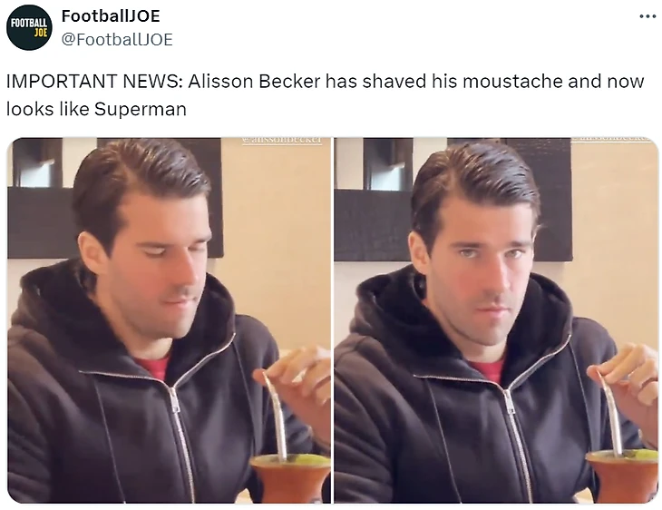 Фанаты вспомнили, что последний раз видели бразильца гладко выбритым весной 2021 года. В соцсетях тогда шутили: «Срочные новости: Алиссон Беккер побрился и теперь выглядит, как Супермен».