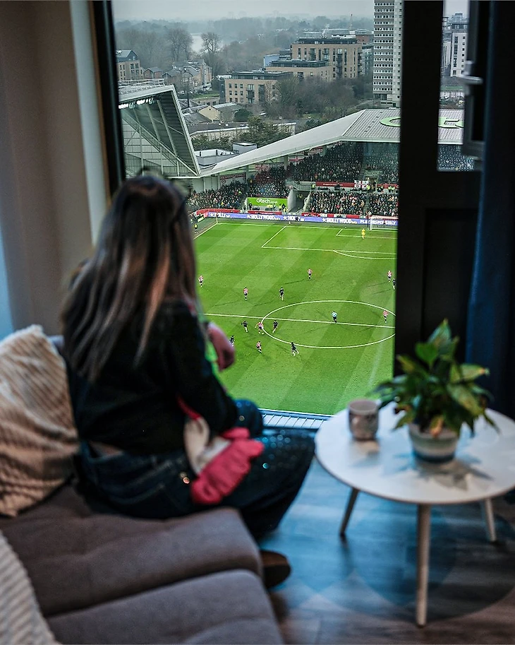 Кадр с вчерашнего матча «Брентфорда» и «Ливерпуля» (0:2) моментально разлетелся по соцсетям. Фотография сделана из квартиры, расположенной вблизи стадиона «Коммьюнити Стэдиум», и выглядит настолько эффектно, что кажется, будто владелица квартиры наблюдала матч с лучшего места на трибунах.