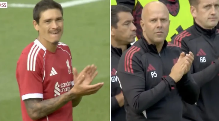 Игроки прервали игру, фанаты скандировали имя Жоты, а Арне Слот и несколько игроков выглядели очень тронутыми. Это был первый матч на «Энфилде» после трагедии.