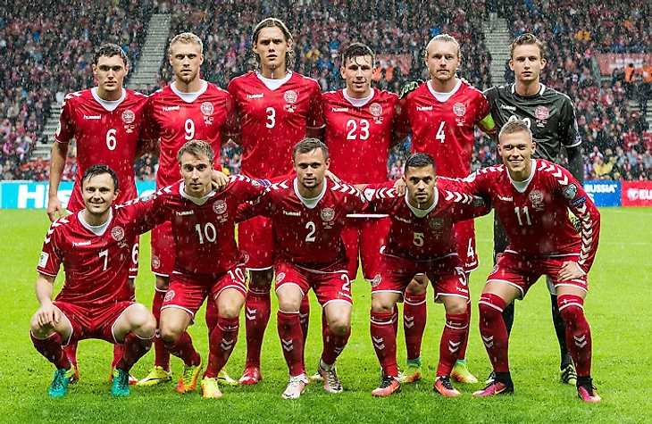 В основной комплект к красной футболке входят белые шорты и красные гетры, к белой наоборот шорты красные, гетры белые. Хотя, датчане играют в полностью красной или белой форме, всё в угоду телетрансляций.