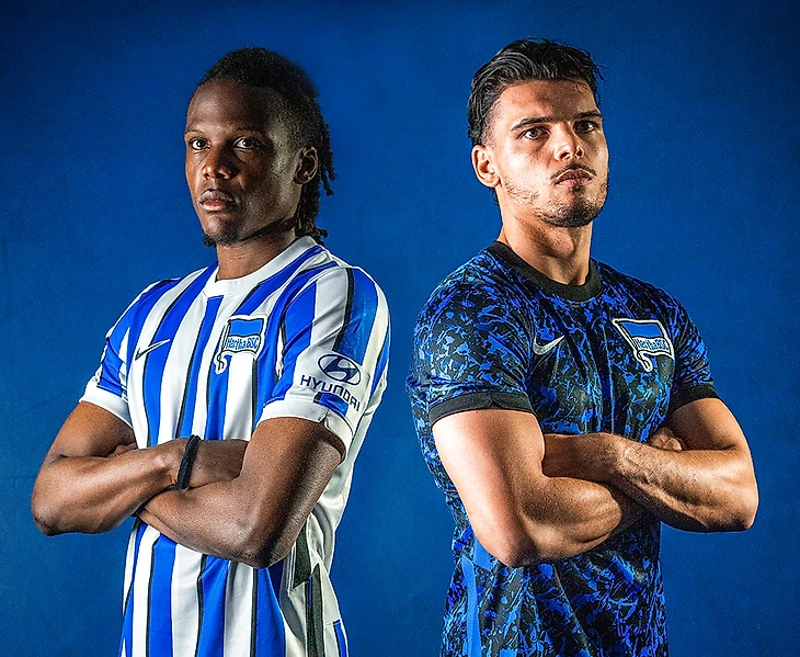 Новая домашняя форма «Герты» 2020-2021 выполнена в бело-синюю полоску. Синие полосы с одной стороны окантованы черными линиями. Воротник и манжеты белые. Черно-синее решение полос немного напоминает форму берлинцев сезона 1995-1996.