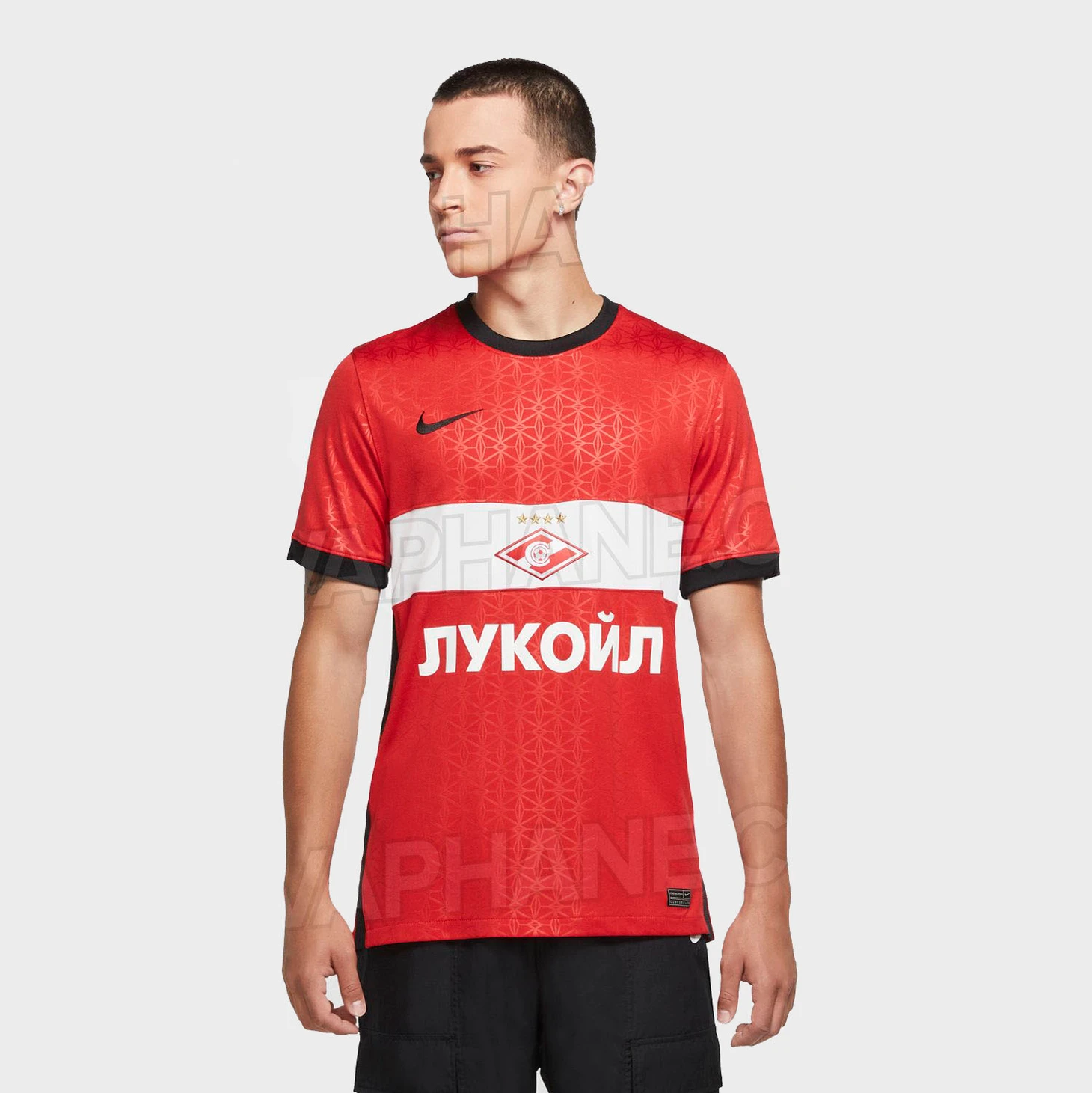 Новая домашняя форма «Спартака» 2020-2021 выполнена в красном цвете с белой горизонтальной полосой по центру которой расположена эмблема клуба. Воротник, манжеты и вставки по бокам выкрашены в черный цвет. Сама футболка покрыта тисненым узором. Надпись Лукойл — белая.
