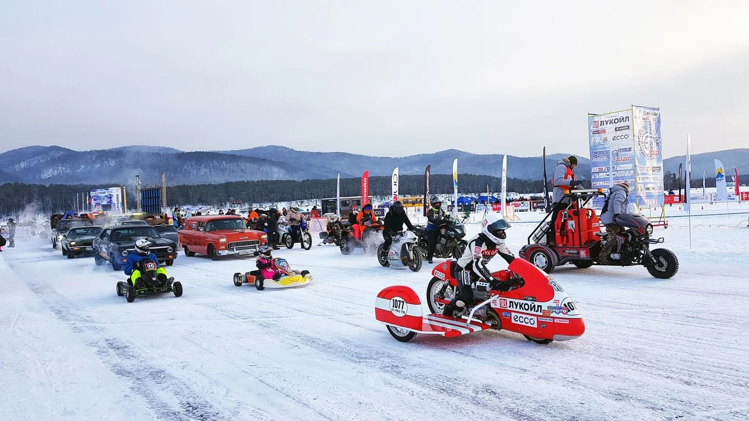 Байкальские гонки: конькобежец против мотоциклиста, ночной марафон и забеги в купальниках