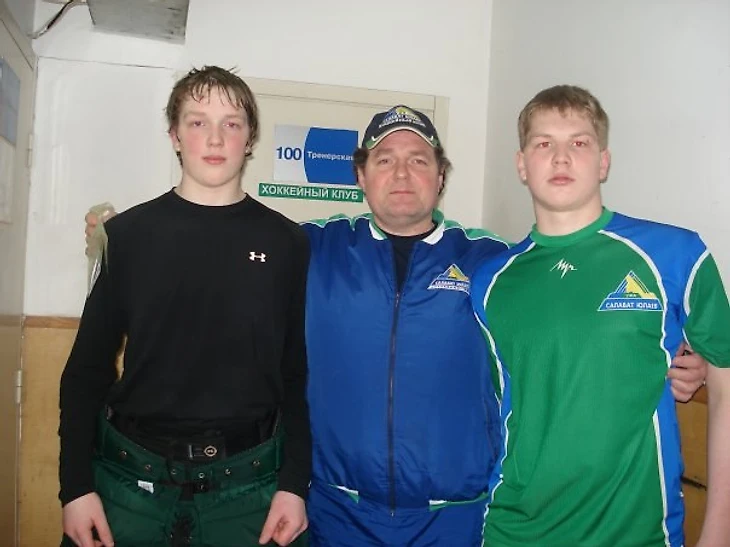 А это фото из моего личного архива. Какой год уже не вспомню, оба тогда еще играли в "Толпаре". Другой сын Андрея Леонидовича Алексей выступает как раз в КХЛ в "Автомобилисте".