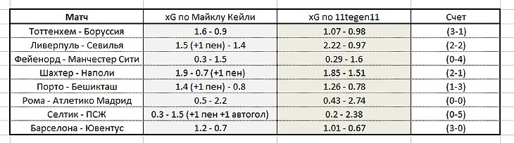 К примеру, я посмотрел другие матчи Лиги Чемпионов. И вот результат:
