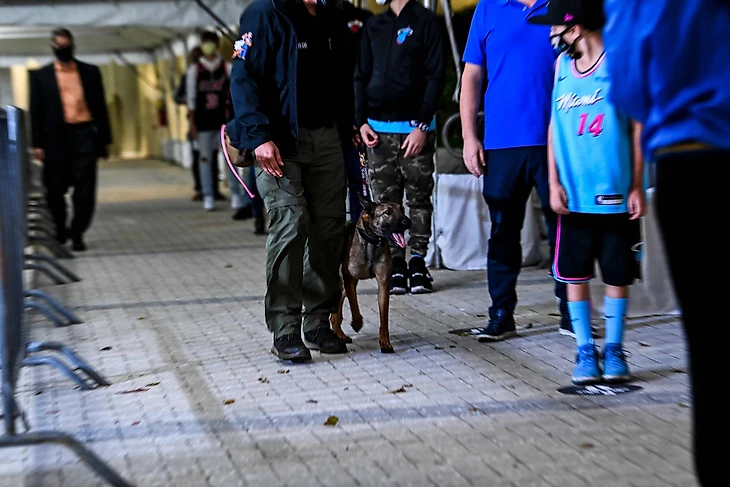 Первые эксперимент с применением обученных на выявление коронавируса собак прошел в конце января в домашнем поединке «Майами» против «Клипперс». На матче присутствовали 1500 зрителей и это первый случай с прошлого марта, когда держателям абонементов позволили присутствовать на трибунах.