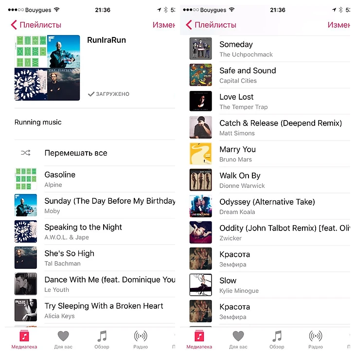 Песни у меня там самые разные: есть, что называется «бегательные» с правильным ритмом – хороши для активной тренировки и соревнований. А есть и любимые лирические композиции, как раз к теме «подумать» отлично подходят.
