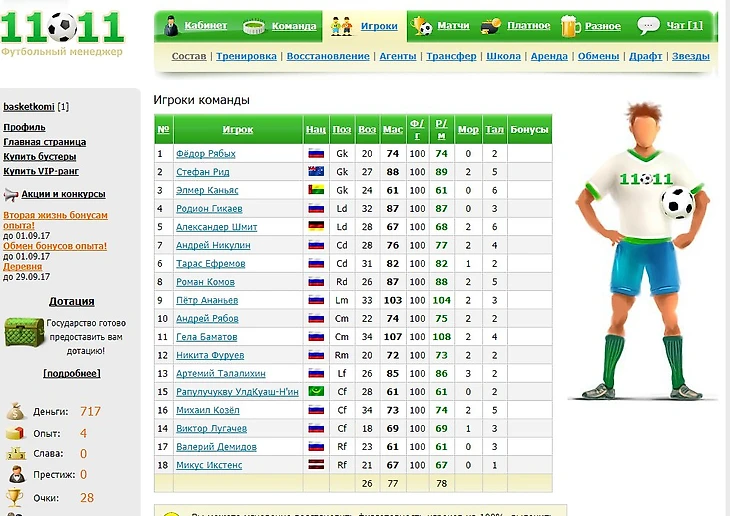 Итак, что хорошего: 1) Реальная база команд и игроков. Да, тут реально есть лишь один Месси, один Роналду и так далее. База привязана к трансфермаркту, соккервею и другим источникам. В общем, если вы играете за условный «Осиек» из Хорватии и у вас на сайте клуба есть молодой талант, то вы сами можете его добавить на проект, разумеется, после небольшой процедуры проверки со стороны администраторов. И кто знает, возможно, в будущем вы его продадите за миллиарды. В общем, если менеджер реально активный – ему все карты в руки. 2) Множество тактических и схематических настроек. Настройками вы можете пользоваться как до матча (они не изменятся в его ходе), так и менять их во время самого процесса. Да, то есть реальная замена, реальная смена позиции игроку в режиме онлайн – и это работает. Видим слабое место противника и давим туда, пока оборона не треснет по швам. 3) Система талантов и силы. К слову, у 11 на 11 тоже есть таланты, влияющие на прокачку. Здесь же есть не только таланты, но и система силы – все зависит от выступления в реальности игрока. Один удачный сезон и парень, которого вы купили за миллион, стоит уже 20 миллионов. Ну, или наоборот…если вы оказались продавцом, тогда есть о чем пожалеть. 4) Разнообразие игровых вариантов. На проекте есть сразу 2 мира, которые существуют параллельно и в которых есть одинаковые лиги. На проекте есть женский футбол, ретро-футбол (для любителей 80-х – команды тех эпох, играющие только друг с другом), и даже любительский футбол – для новичков, которые только думают, играть или нет.