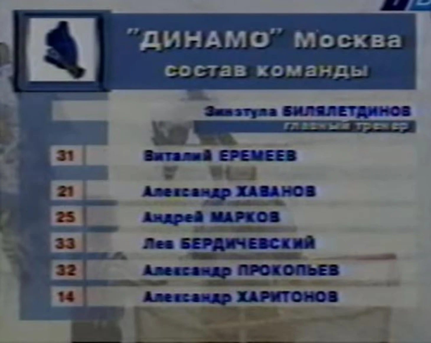 Прежде, Билялетдинов-игрок не мог похвастать золотом на уровне национального первенства, его "Динамо" 7 раз становилось серебряным и 6 раз бронзовым призёром, в эпоху гегемонии ЦСКА. Придя в московский клуб в 97м Билл, уже имевший немалый опыт наставничества за океаном, быстро нашел общий язык с коллективом и, уже спустя два года, привел динамовцев к серебру чемпионата. Но на достигнутом не остановился и уже в сезоне 99/00, победив в регулярке, катком прошелся по плей-офф, проиграв лишь в 4 матчах из 17. Костяк команды составили по принципу сплава молодости с опытом. Рядом с перспективными защитниками Прошкиным и Марковым (проводившим последний сезон перед отлётом в Монреаль), действовали уже опытный Хованов и Трощинский, в нападении главную опасность представляли Михаил Иванов и пара Александров - Прокопьев и Харитонов, накануне чемпионского сезона пришел из "Ак Барса" Алексей Кудашов, во всю привлекался к основе 19-летний Алексей Терещенко . Вот как выглядел стартовый состав на последний матч сезона: