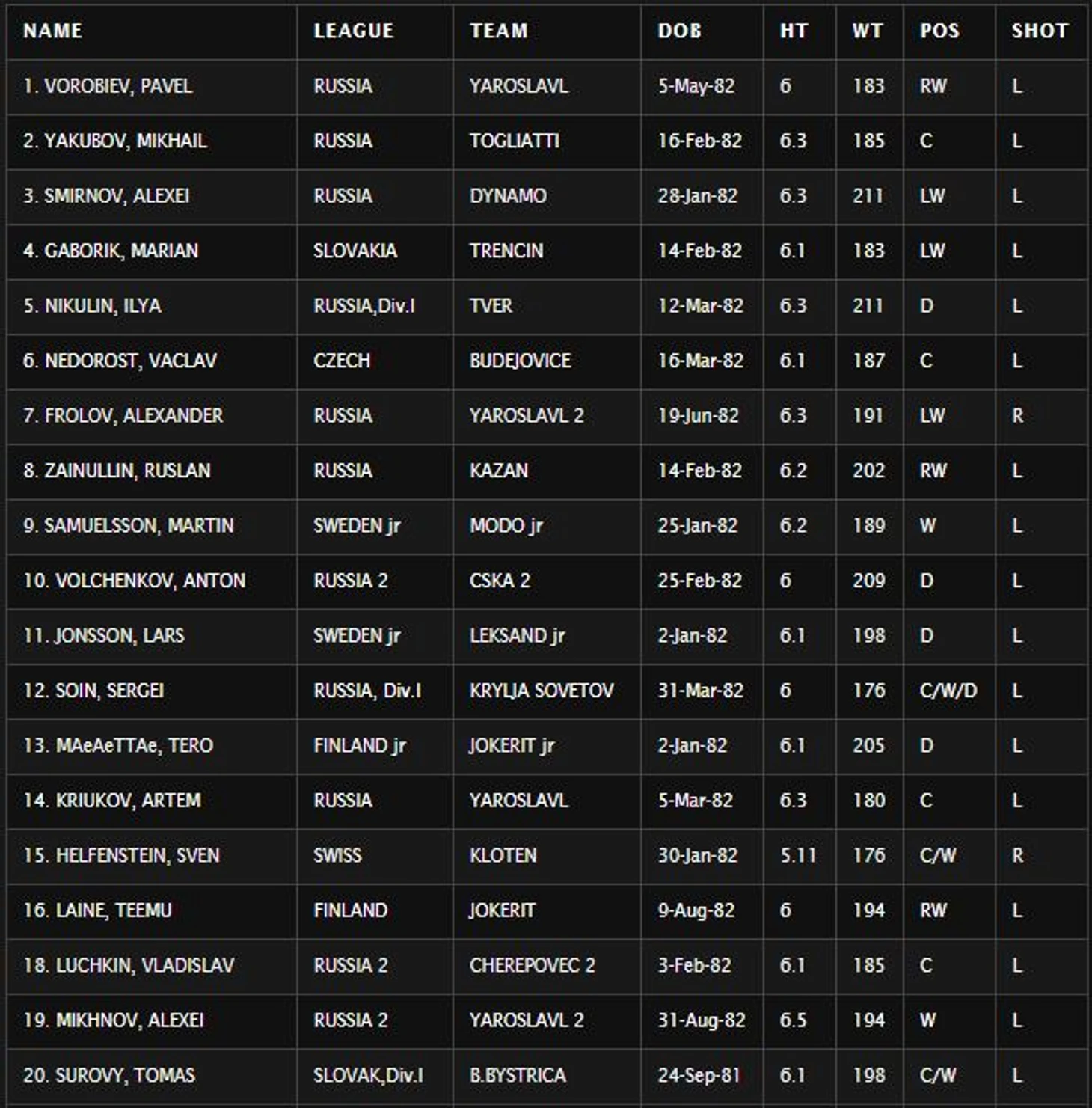 Ни до, ни после 2000 года, в истории главной хоккейной лиги мира на драфте не выбирали сразу более 4х десятков российских игроков. Уже в предварительном рейтинге проспектов, среди играющих в Европе полевых игроков, в топ-20 было более половины россиян.