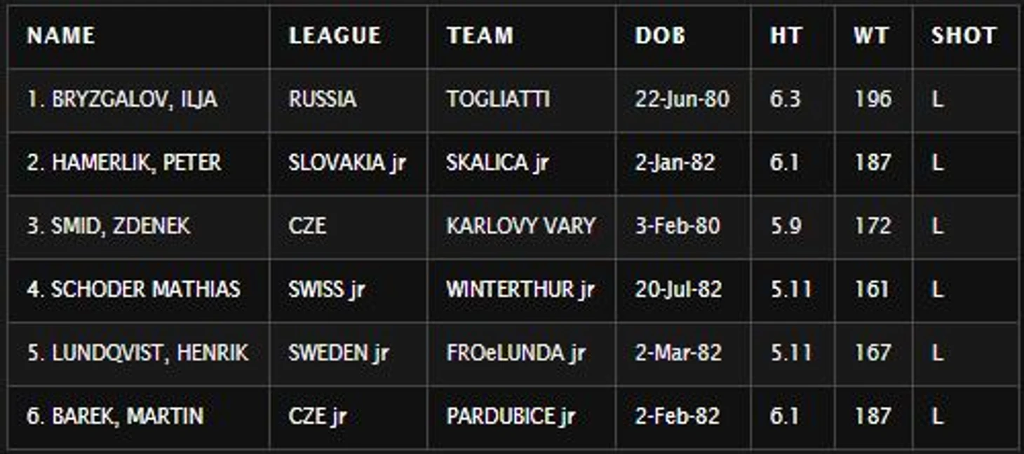 Тем не менее выбирать представителей европейский лиг под первыми номерами никто не собирался (за всю историю к 2000му году таких случая было всего лишь 2). Времена Ковальчука и Овечкина, были впереди и совсем не за горами.